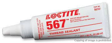 LOCTITE 567 is an off-white, UL approved, low disassembly strength methacrylate thread sealant, ideal for sealing coarse threads up to M80/R3”.