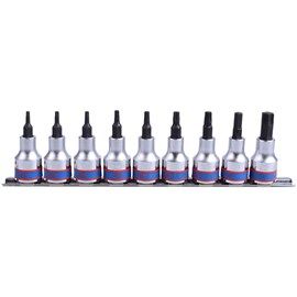 9 piece 3/8" drive torx bit sockets on rail